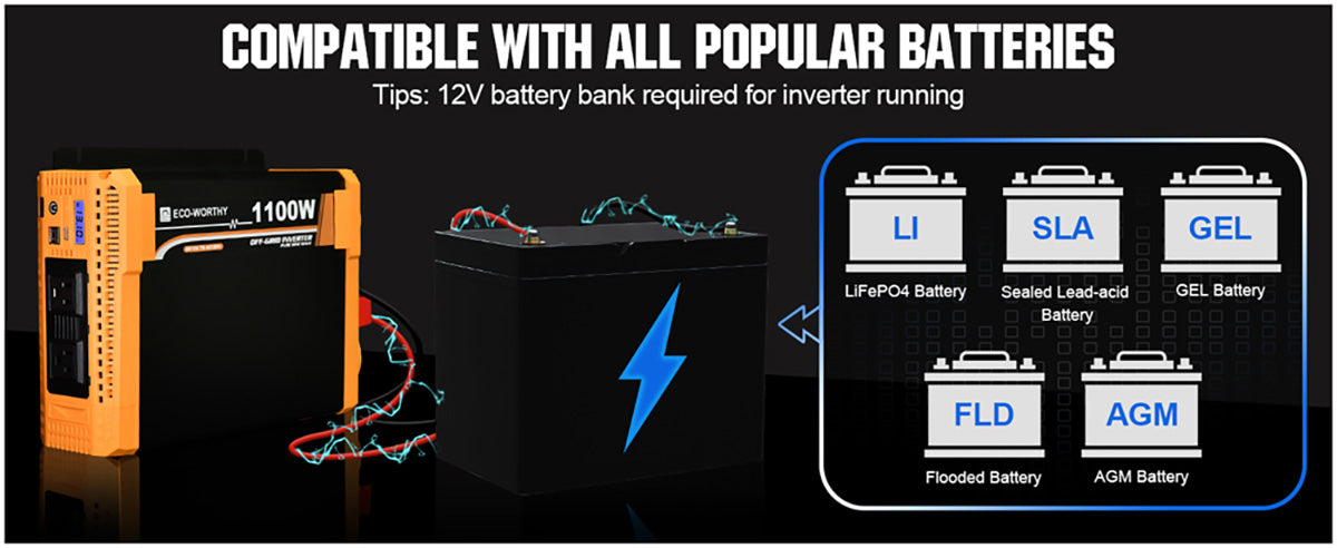 ·Safe For Use: Overload protection, ground wire anti leakage, 120A ANL fuse and built-in plug-in fuse are pre installed on the battery line. Dual channel & dual cooling fan, no overheating risk.