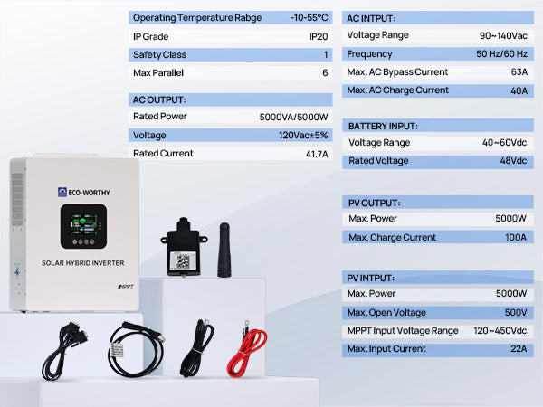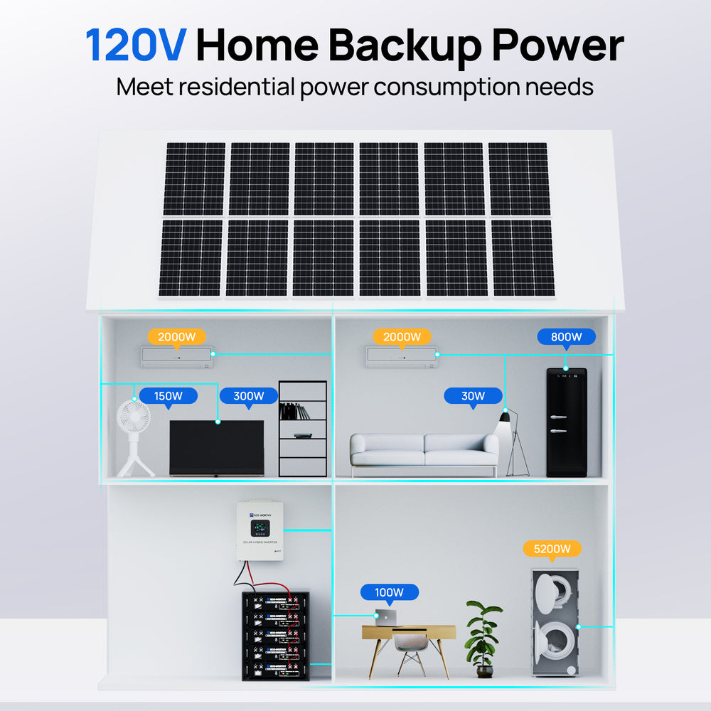 ECO-WORTHY 5.12KWh/10.24KWh Home Backup Power With 48V 100Ah LiFePO4 And 5000W 48V Hybrid Inverter