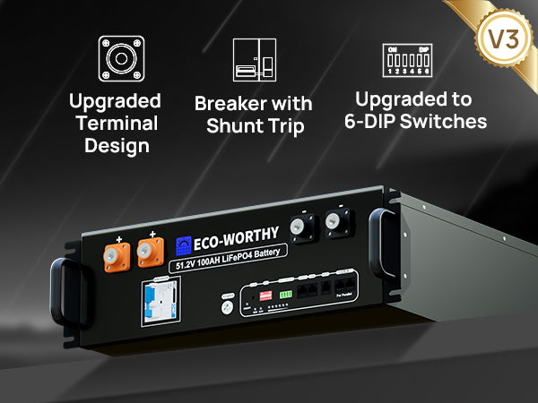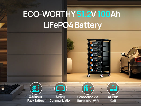 ECO-WORTHY 48V(51.2V) 100Ah Server Rack Battery,5.12kWh Lithium Battery,3U Size,With Bluetooth & Wifi(V3)