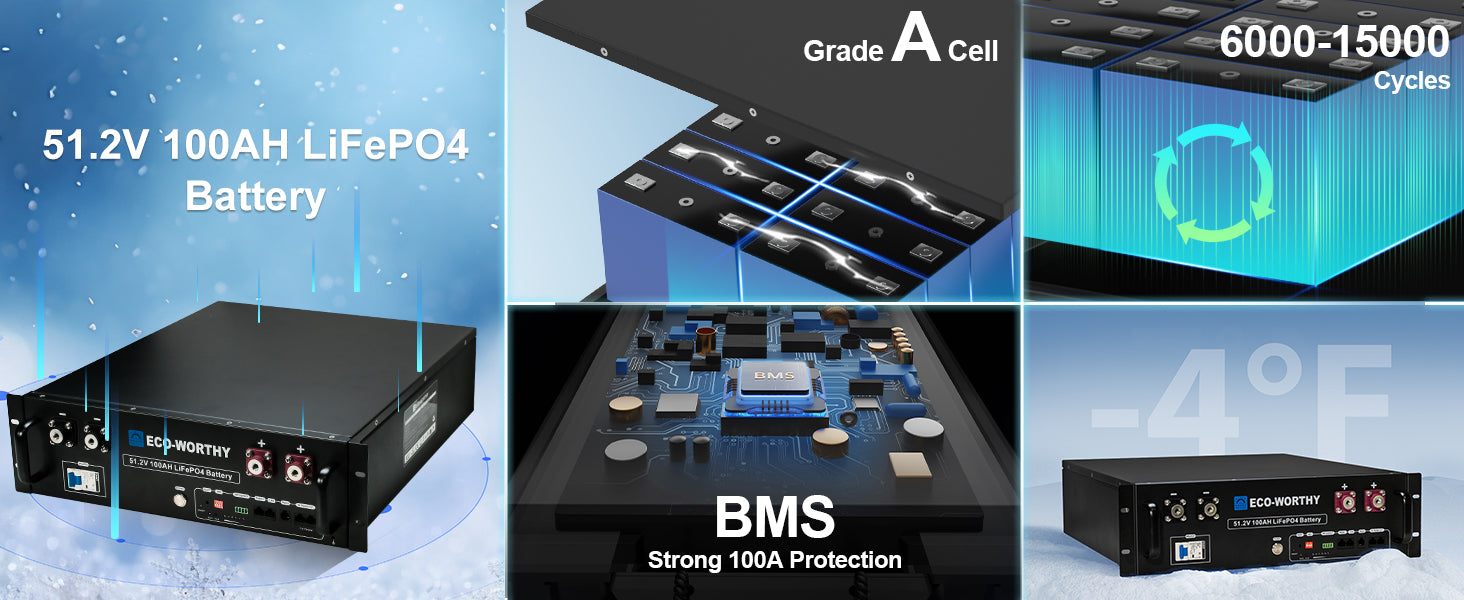 6xECO-WORTHY 51.2V 100AH LiFePO4 BATTERY