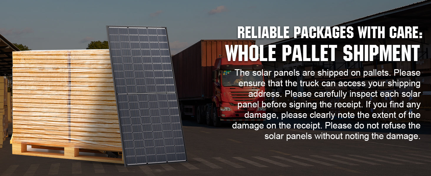 (Note: 410W solar panels are shipped on pallets and must be returned the same way. Please document any damage upon receipt and contact us. For smooth delivery, provide a valid phone number for the driver to reach you.)