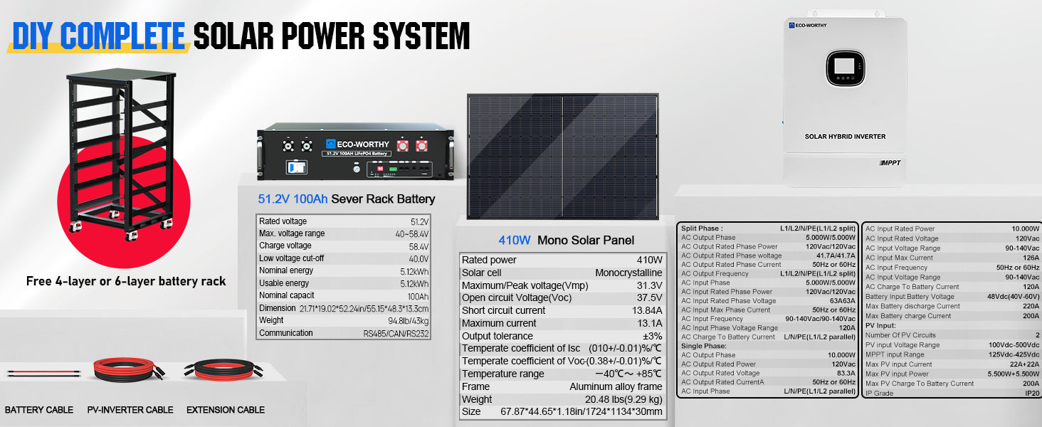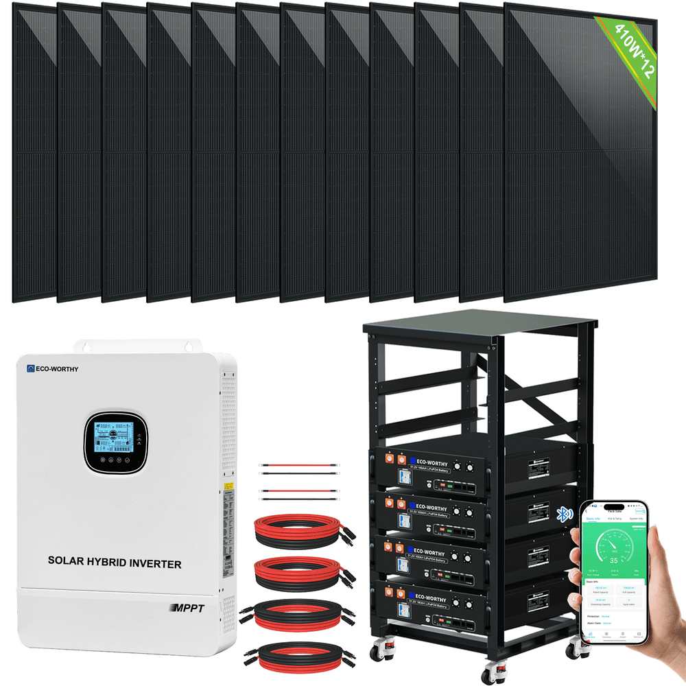 ECO-WORTHY Complete Off-Grid Solar Power System - 10000W 120/240V Output | 20.48kWh/61.44kWh Lithium Battery | 4920 Watts/14760Watts PV Input