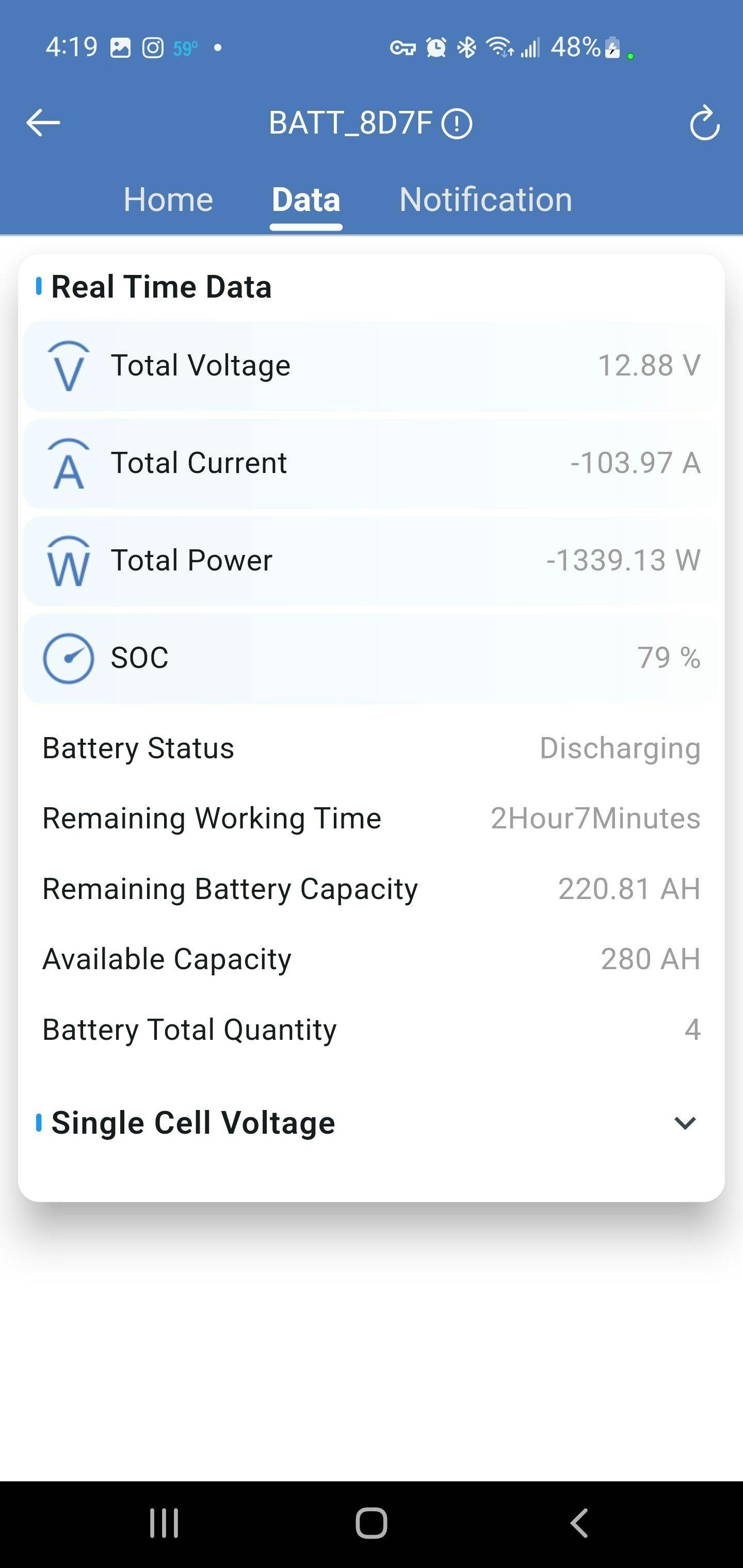 Love how I can monitor the battery with the app to tell how full or discharged it is. I just wish there was a bluetooth app for the eco worthy 60amp solar controller.