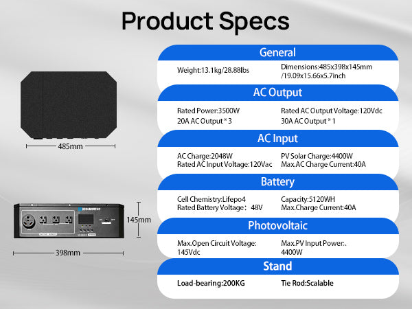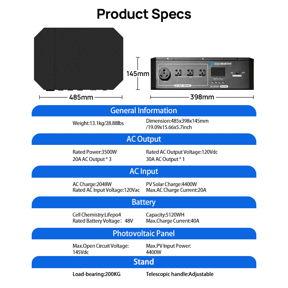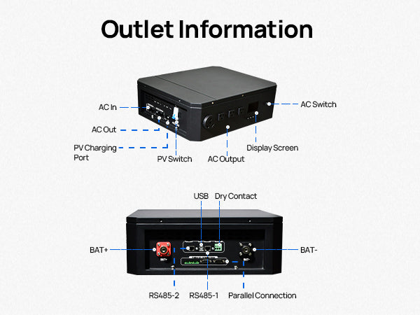 paralleled and phase-separated Inverter: The 3500W inverter/controller can be paralleled and phase-separated. It has a maximum photovoltaic input power of 4400W and features three 20A and one 30A AC output sockets, meeting the power needs of most loads.