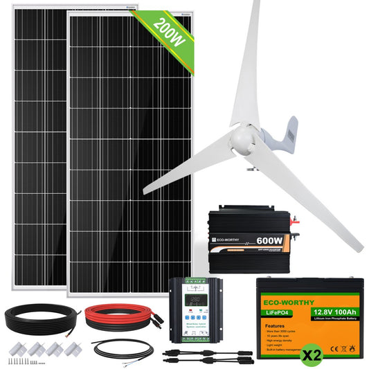 600W 12V (400W Wind+2x 100W Solar) Solar Wind Hybrid Kit
